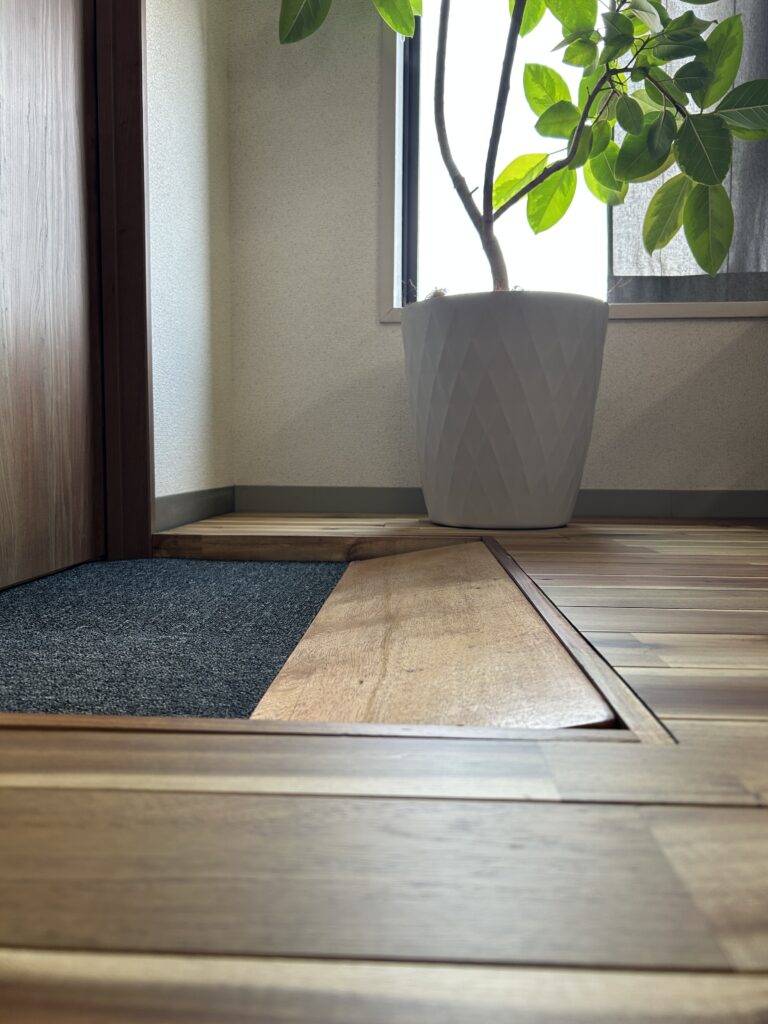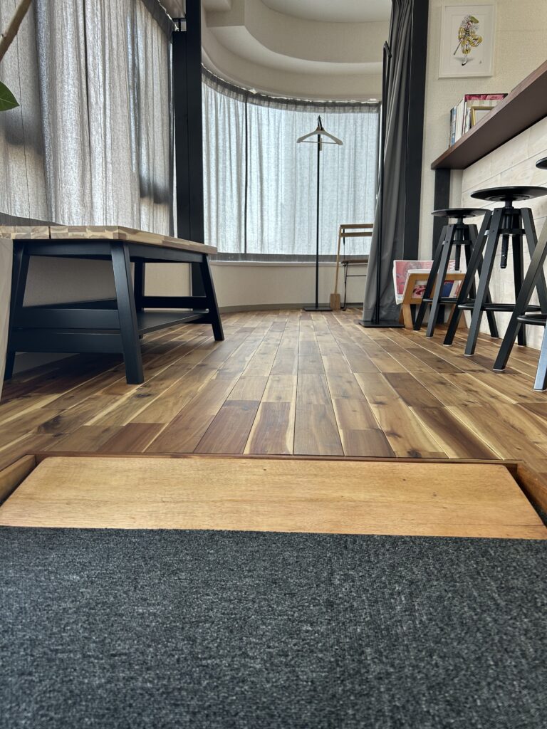 ご来店時に躓かれてしまうお客様が少なくないので、店舗入り口を小さなスロープにしました。
