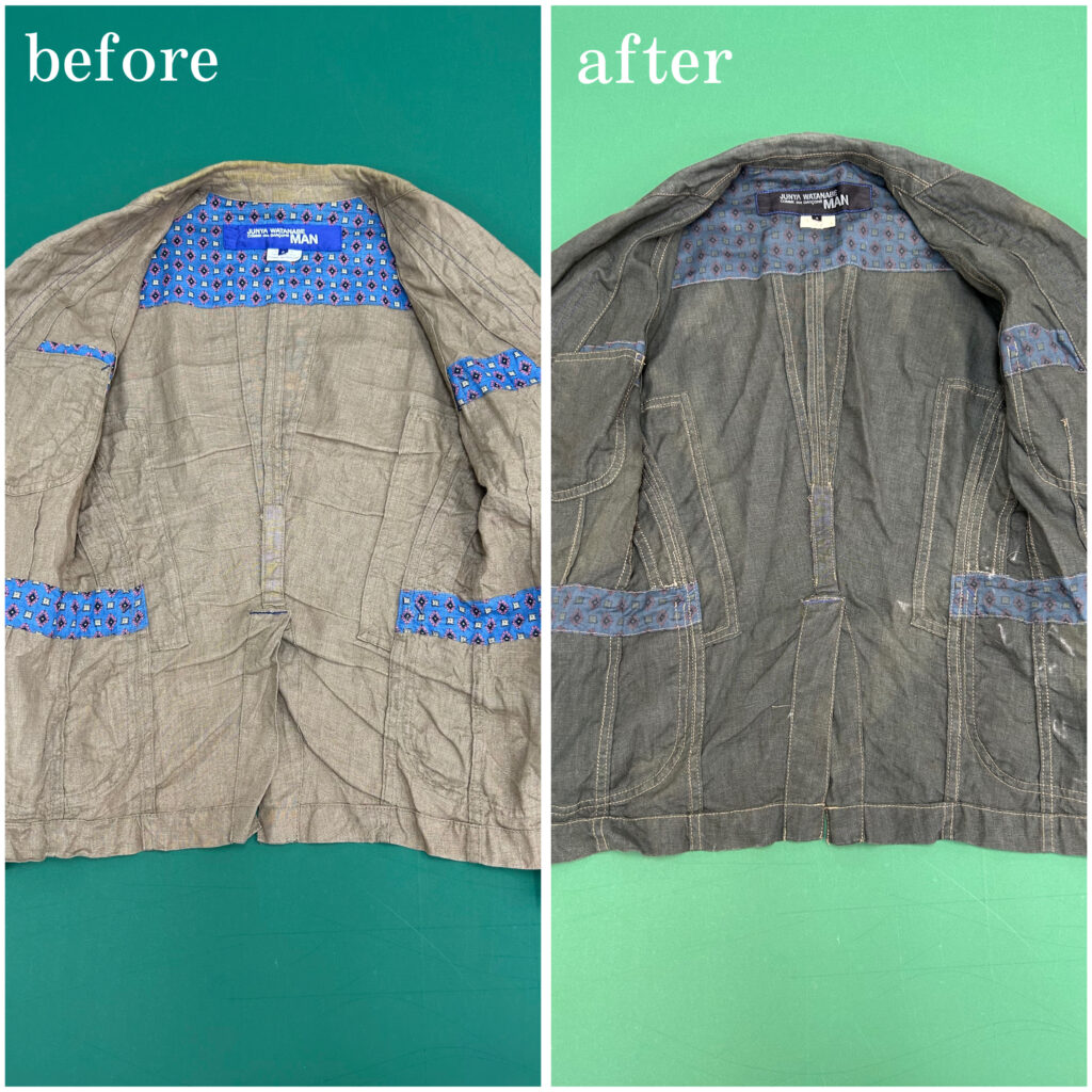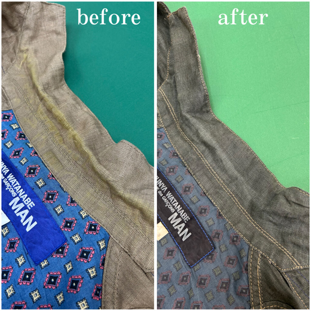 襟の汗染みがクリーニング店での染み抜きでも落ちなかったので、思い切って染めてみました。